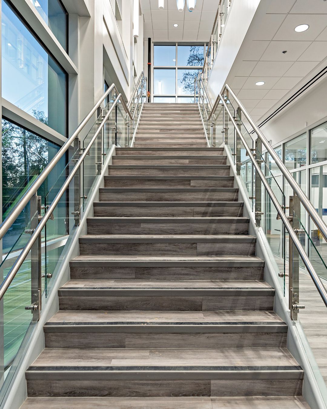 Flexible, collaborative spaces are integrated throughout each level, encouraging connection across departments. At the heart of the building, a large open lobby is paired with an adjacent auditorium, separated by an operable wall that can be opened to create an expansive venue for public events and gatherings.