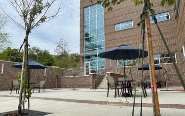 Architecturally, the facility blends traditional and modern elements, combining brick façades with hurricane-rated curtain wall systems featuring low-E glass, spandrel glass, and aluminum paneling, delivering both durability and visual impact. The site design incorporates native landscaping, new parking and drive areas, and an outdoor courtyard, creating a welcoming and functional environment both inside and out.