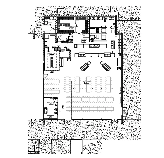 The renovations to the existing Florida Ave Elementary School includes enclosing the exterior walkways between the main classroom buildings, a sprinkler system in the newly connected buildings, and the renovation of the music room, cafeteria, and kitchen. The school would also have a new front entry that would tie into the design of the new enclosure throughout and give the school amore modern and grand entrance. The existing brick façade classroom buildings are not all the same design as the campus expanded throughout the decades; therefore, the new enclosure is entirely aluminum curtainwall construction so as not to compete with or combine the dissident facades. At the center of the long enclosure, the curtain wall extends higher to let more natural sunlight in within the narrow hallway than is currently available. The combination of this new enclosure and the new canopies at each of the three major entrances provides for more protection from the elements and further security for the school, in addition to the upgraded finishes in this central area.
