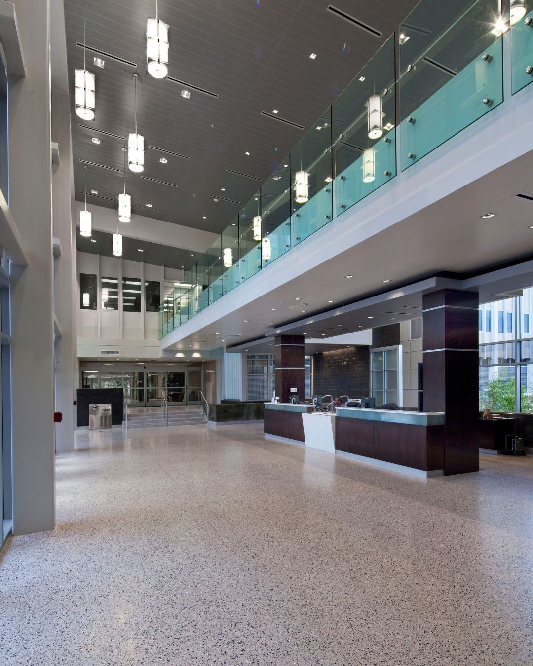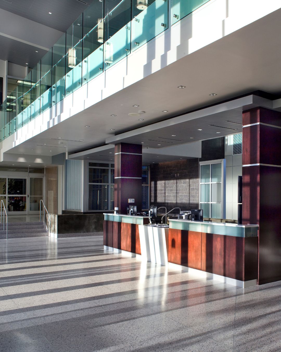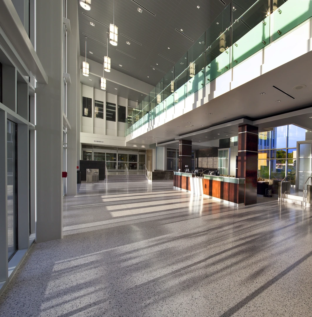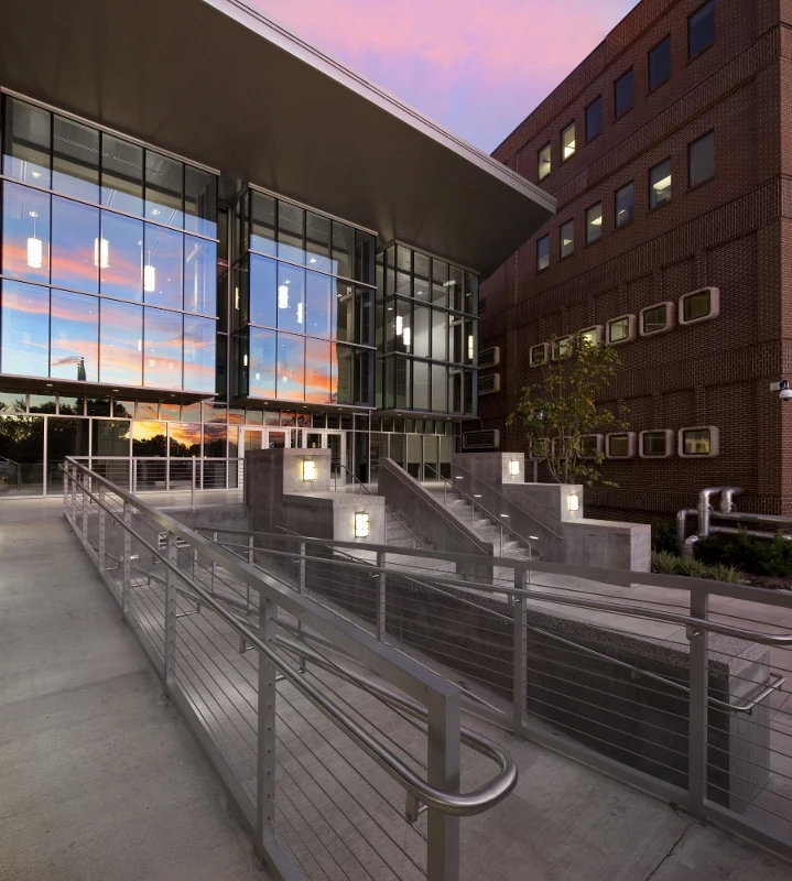 The Louisiana Workforce Commission atrium addition introduces a 3,915-square-foot, two-story glass structure that redefines the entry experience while unifying the existing campus. Positioned between two previously separate buildings, the atrium creates a clear and welcoming front door for the facility.