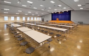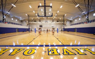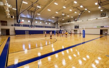 Athletics play a central role in campus life, highlighted by a 1,500-seat main gymnasium complete with locker rooms, a weight room, and a concession area. An additional auxiliary gym provides expanded space for training and events.